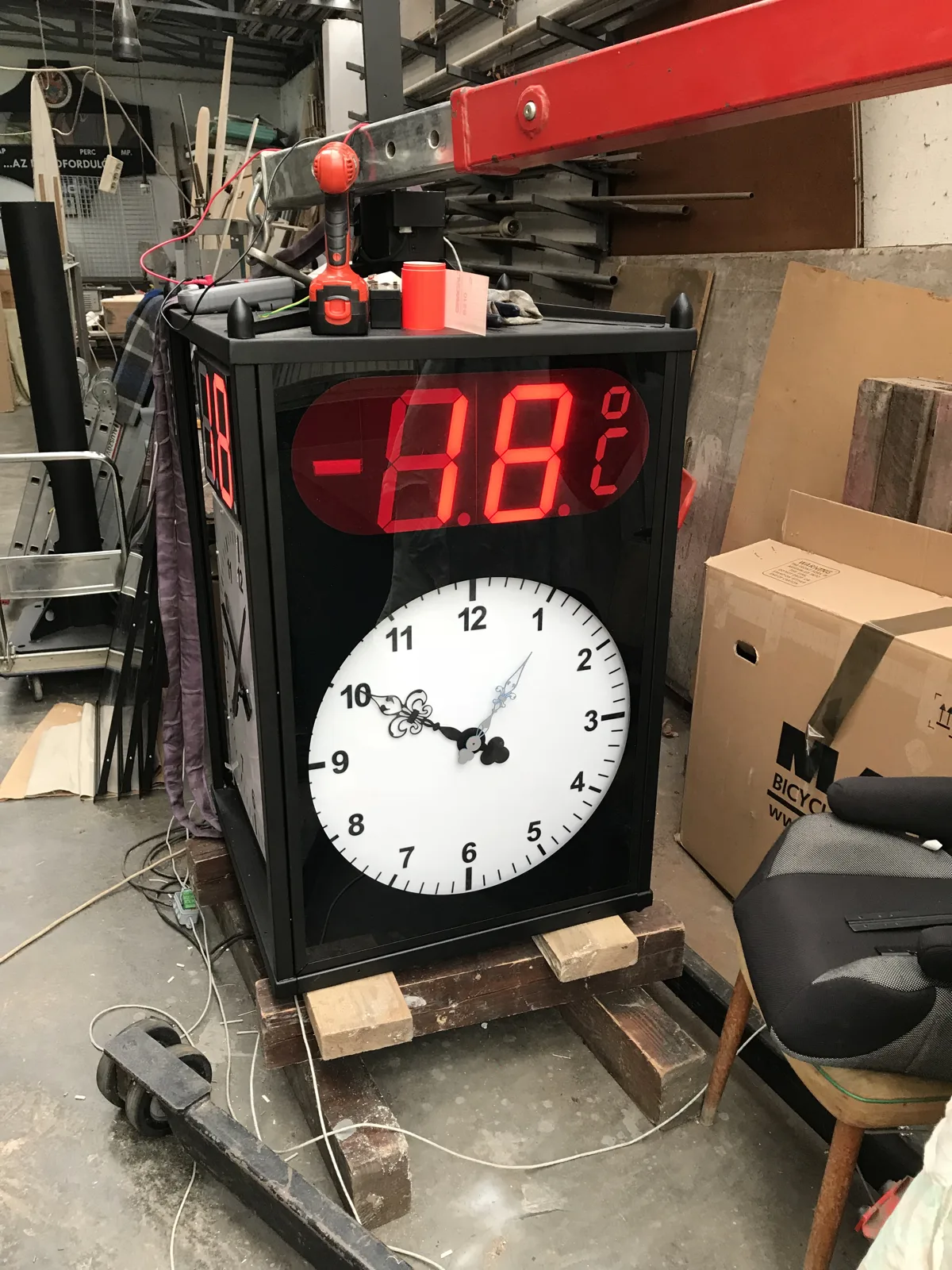 Köztéri óra telepítése.