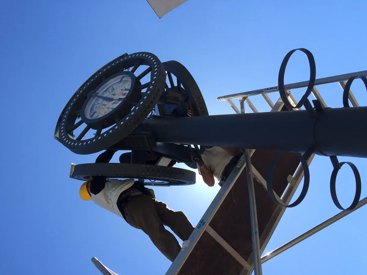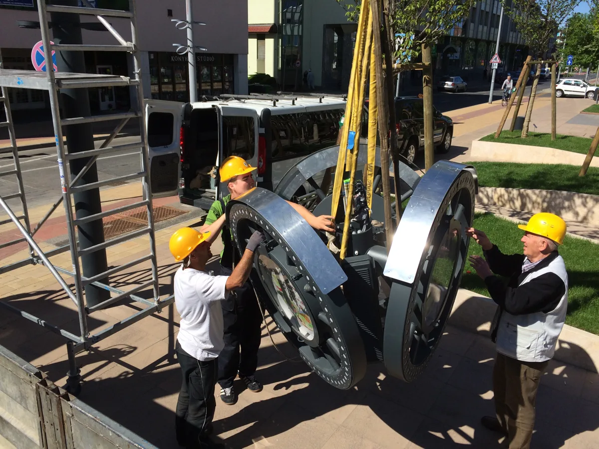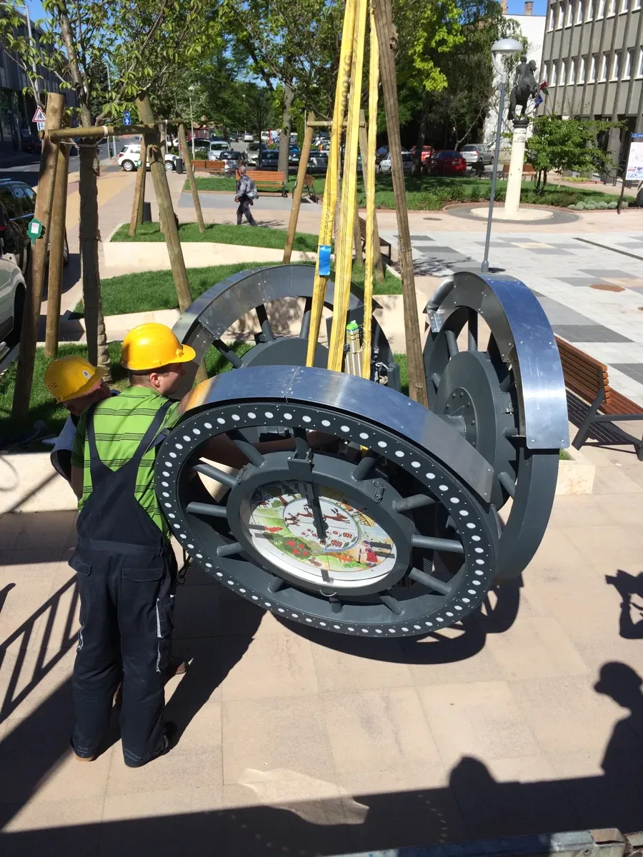 Köztéri óra telepítése.