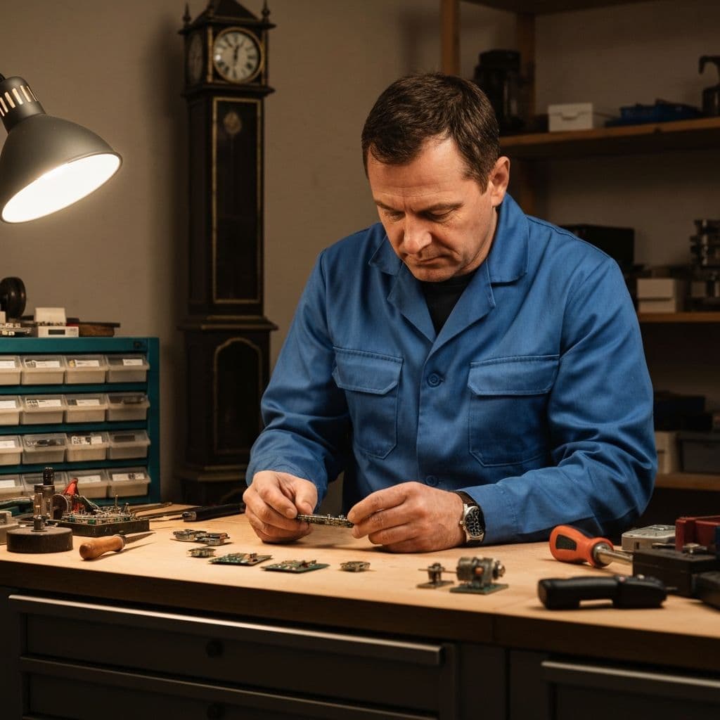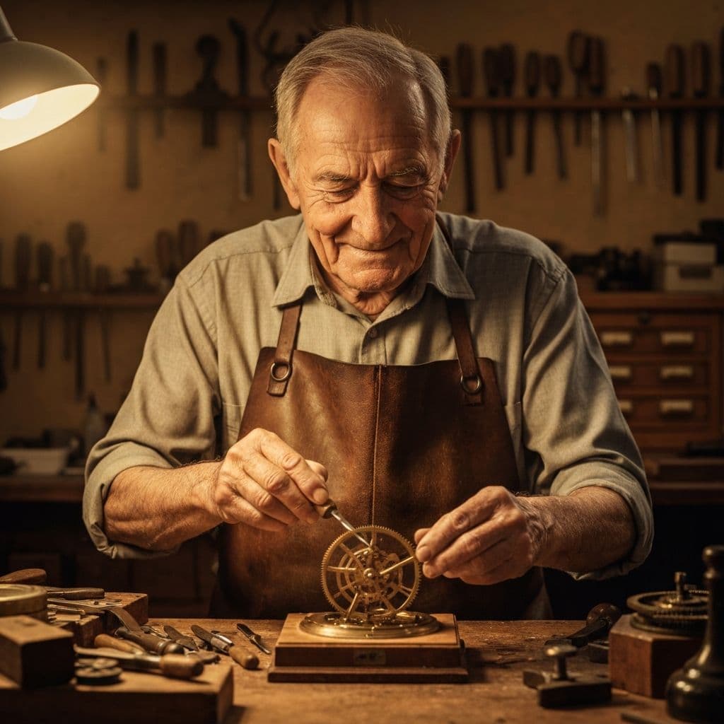 Id. Gulácsi János megalapítja első műhelyét. A kezdeti években a fókusz a mechanikus toronyórák javításán és karbantartásán volt, lefektetve a precizitás alapjait.